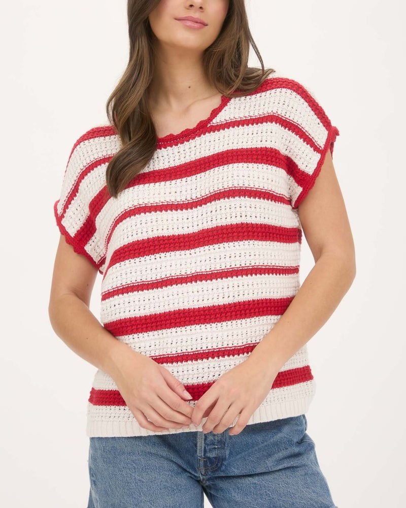 Stripe Scallop Trim Crochet Top - Red- FINAL SALE
