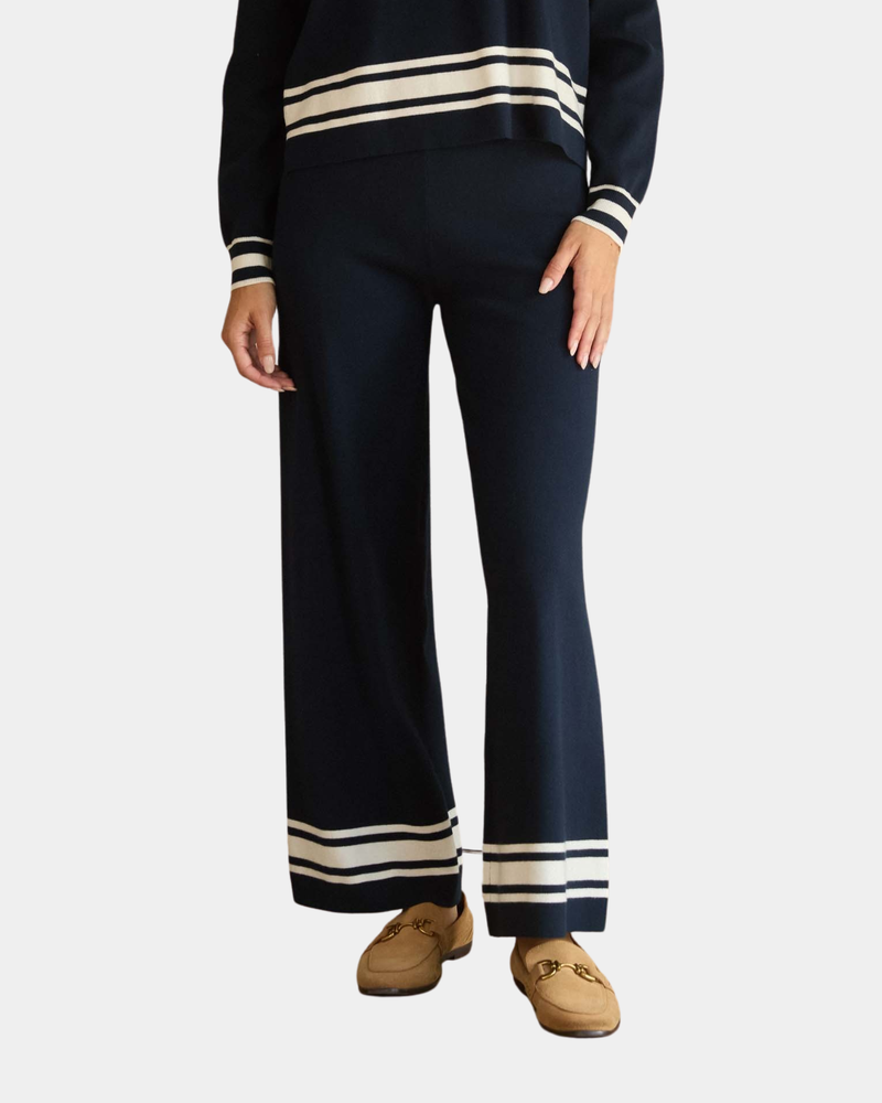 Striped Hem Knit Pants - Navy/White