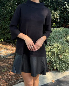 Sweater Dress with Leather Trim - Black