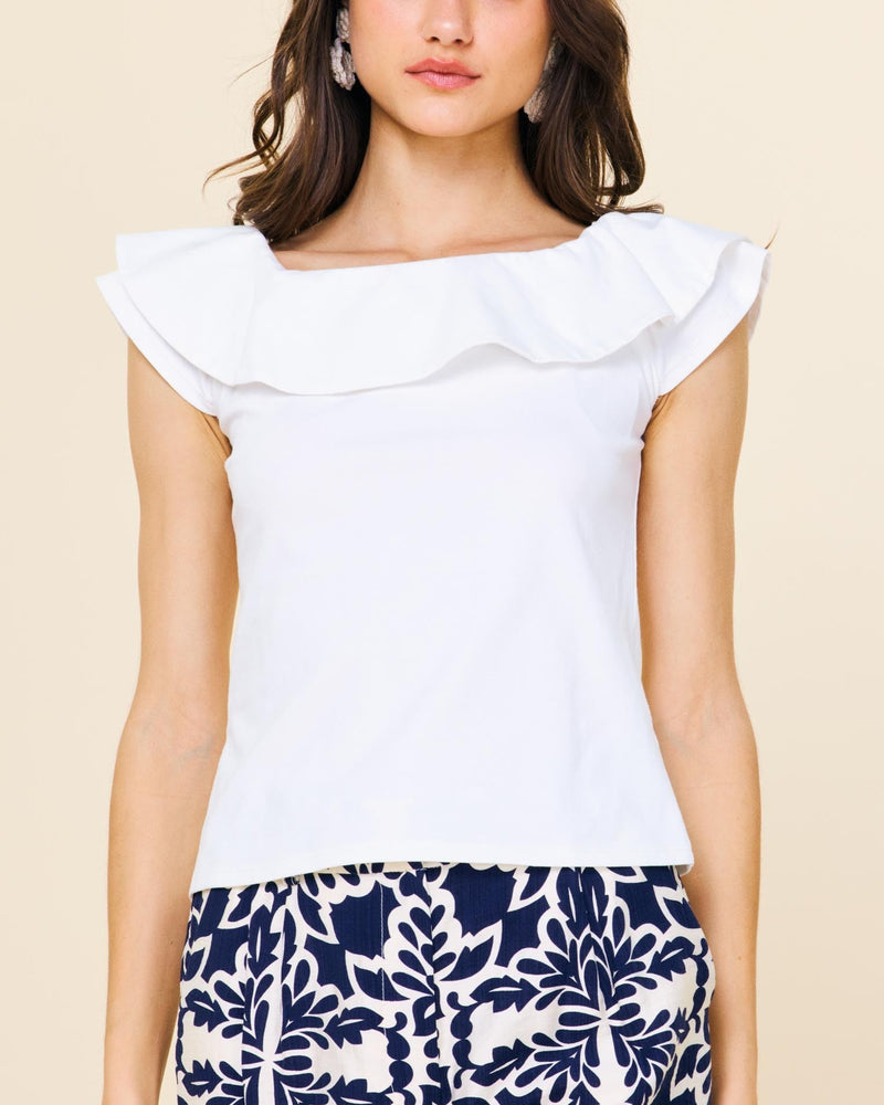 Knit Ruffled Off The Shoulder Top - White - FINAL SALE