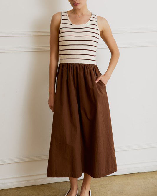 Knit Dress with Stripe Top - Cream/Brown Stripe - FINAL SALE