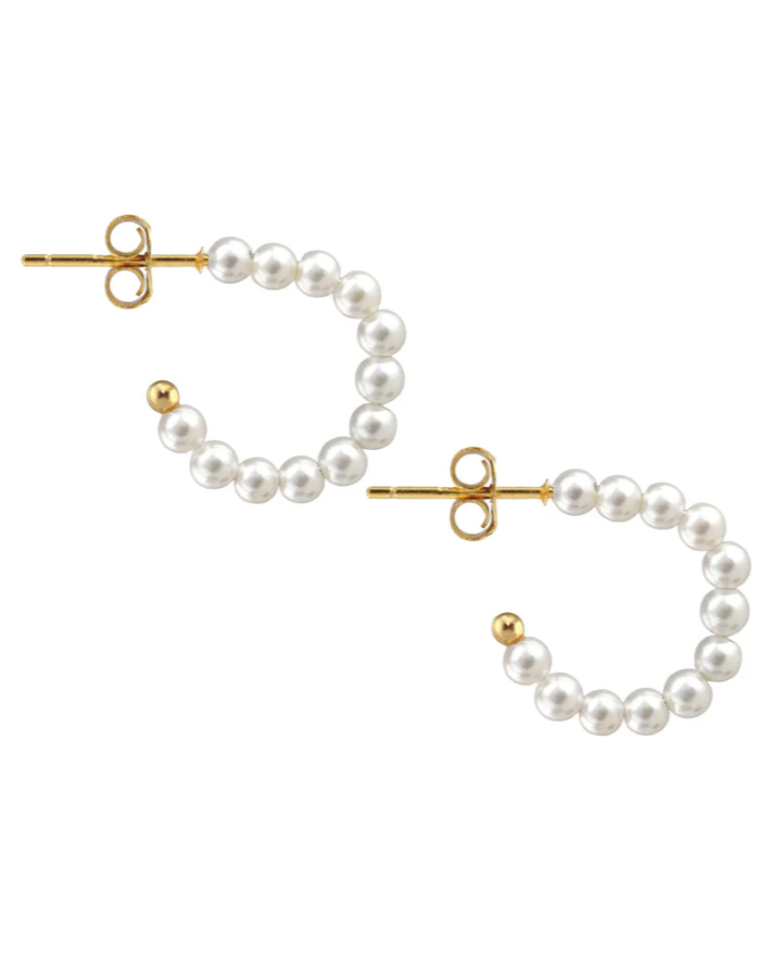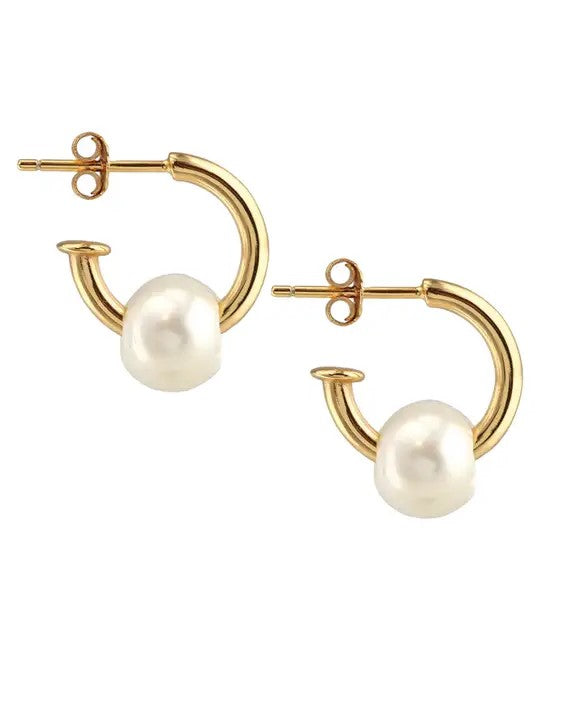 Kris Nations Freshwater Pearl Huggie Post Hoop Earrings - Gold