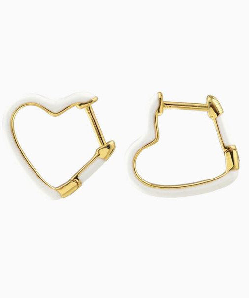 Kris Nations Open Heart Enamel Hinged Huggie Hoop Earrings - White