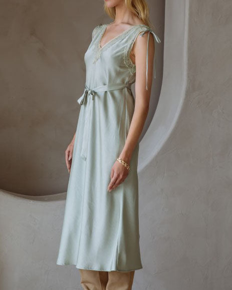 Lace Trim Slip Dress - Sage - FINAL SALE