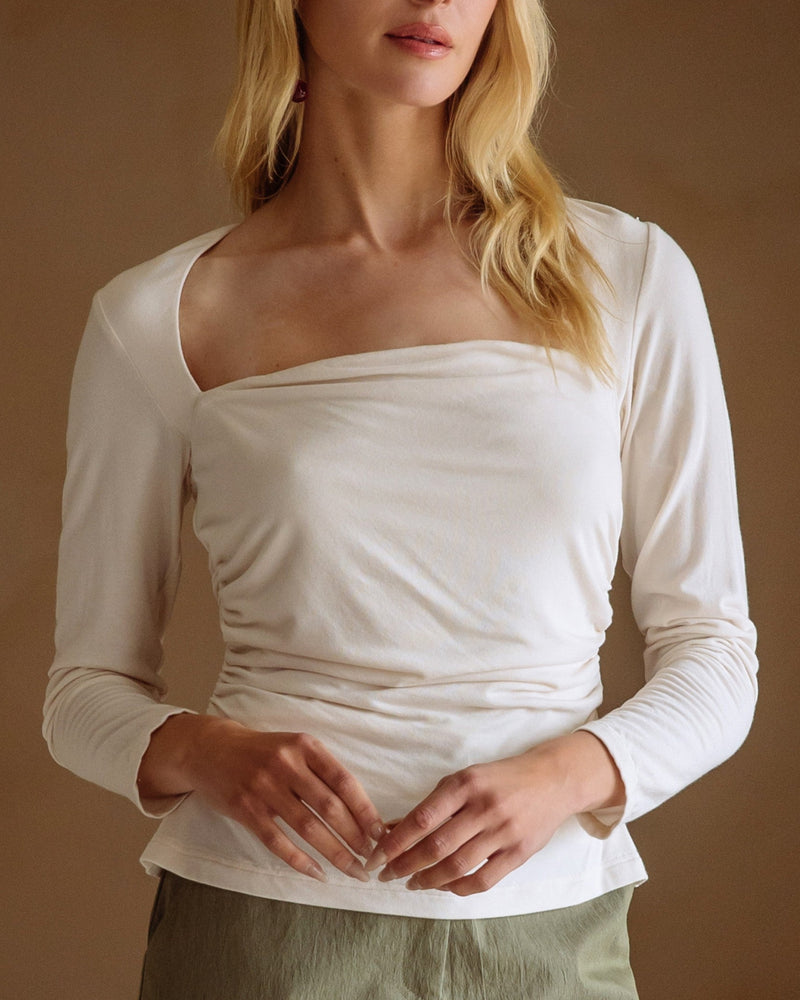 Long Sleeve Square Neck Top - Cream - FINAL SALE
