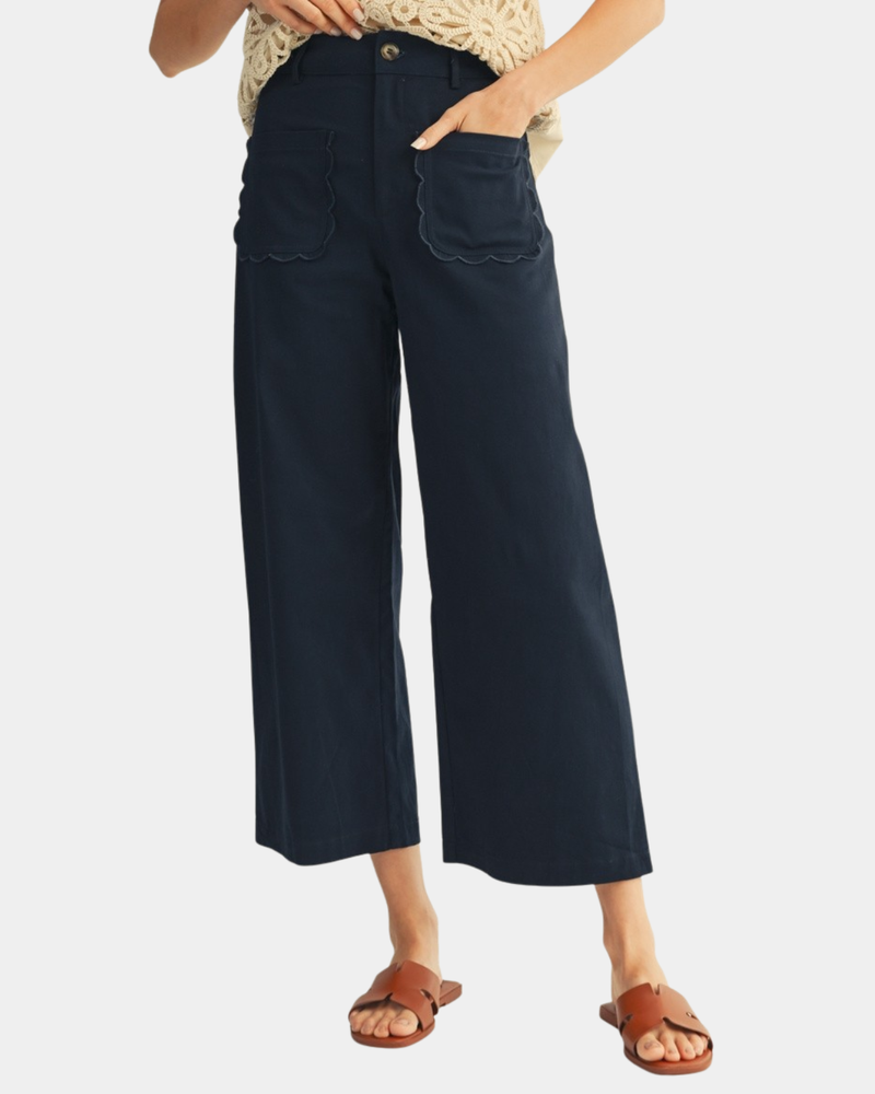 Scallop Edge Pocket Pants - Navy