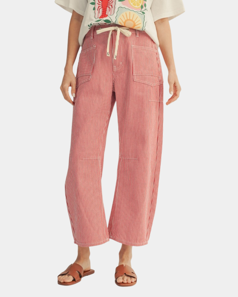 Stripe Barrel Pants - Red