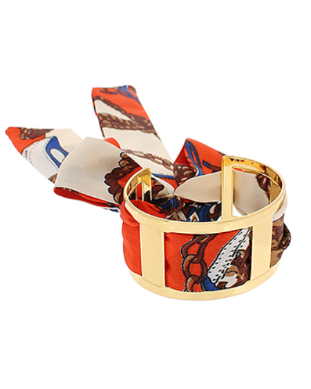 Brass Cuff Scarf Bracelet - Ivory/Multi/Gold
