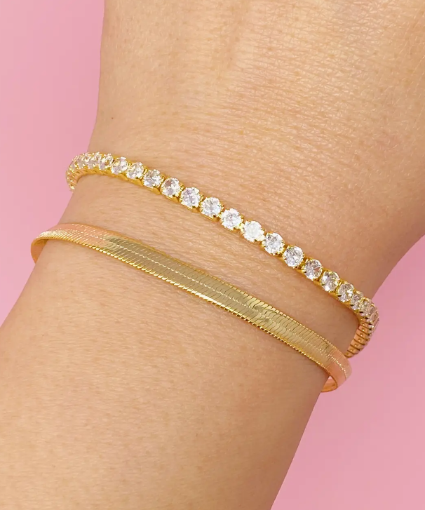 Herringbone and Tennis Bracelets, Set of 2 - Gold