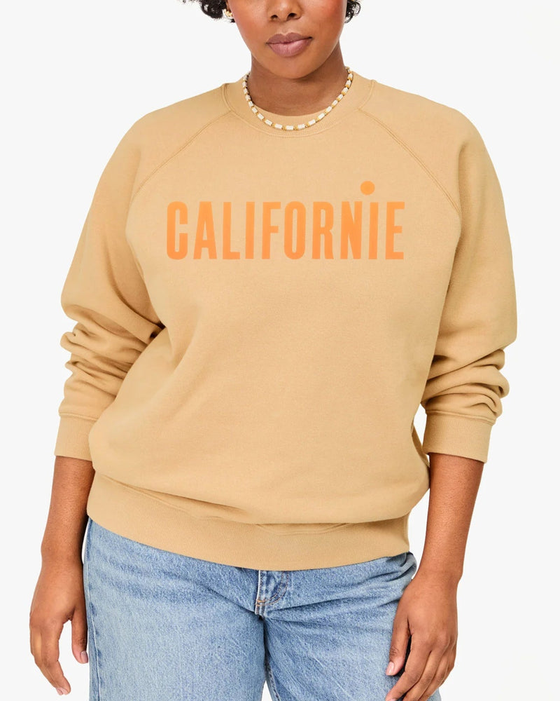 Clare V. Sweatshirt - Sand With Neon Orange Californie - FINAL SALE