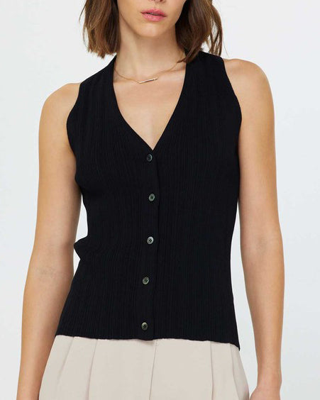 Sleeveless Button Down Sweater Top - Black - FINAL SALE