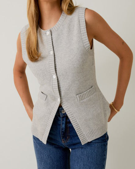 Button Down Knit Vest - Heather Grey - FINAL SALE