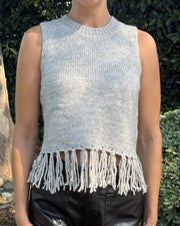 Sleeveless Fringe Sweater Top - Heather Grey - FINAL SALE