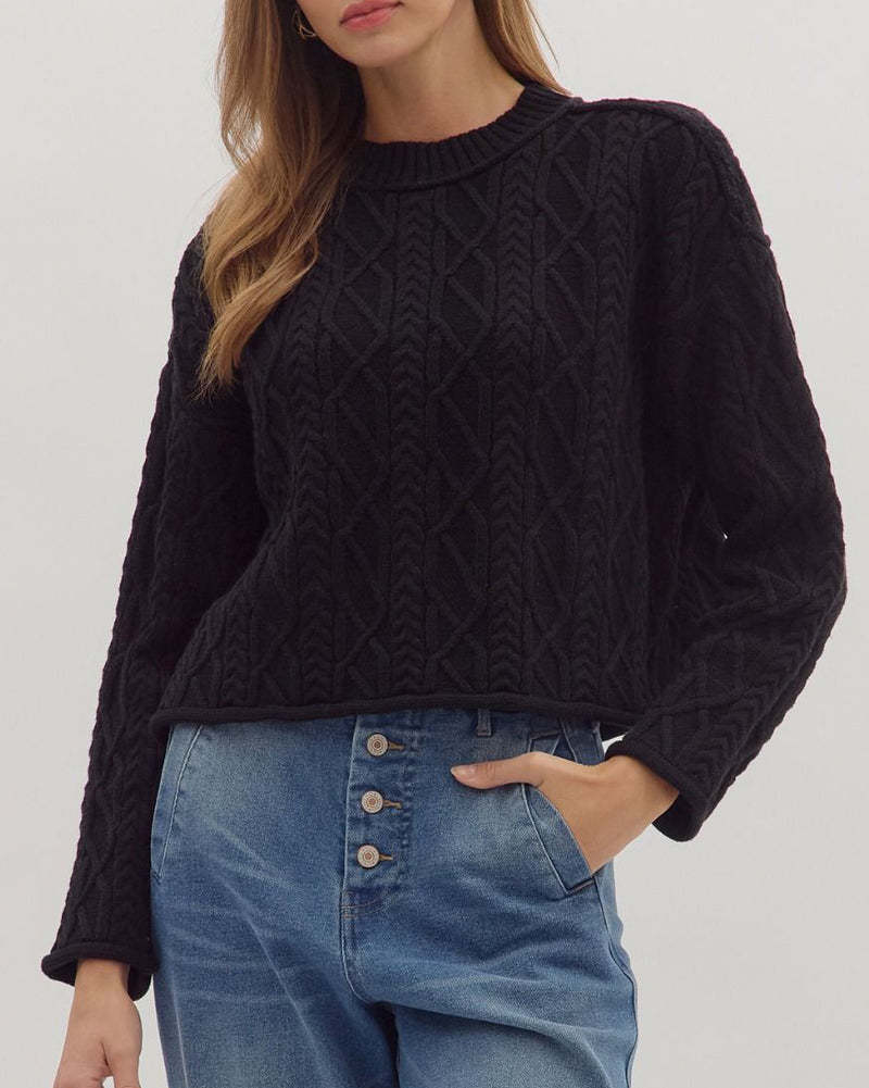 Half Zip Knit with Contrast Detail - Dusty Blue