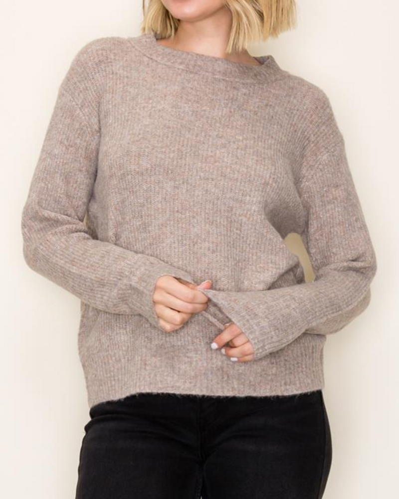 Ribbed Crew Neck Pullover Sweater - Light Mocha