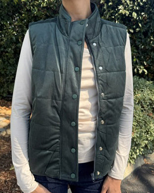 Corduroy Puffer Vest - Dark Green - FINAL SALE