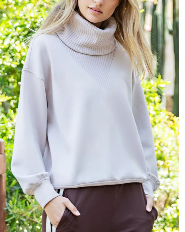 Soft Modal Luxe V-Turtleneck - Mocha Cream