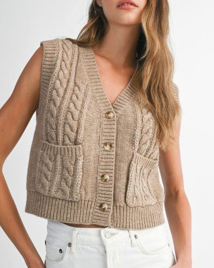 Cable Knit Button Down Vest - Light Mocha