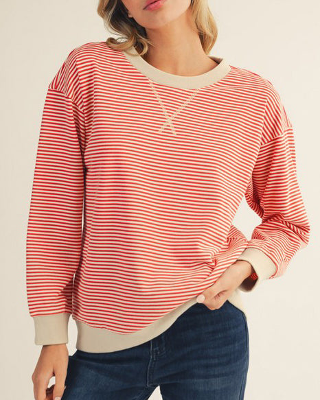 Stripe Cherry Print Top - Navy - FINAL SALE