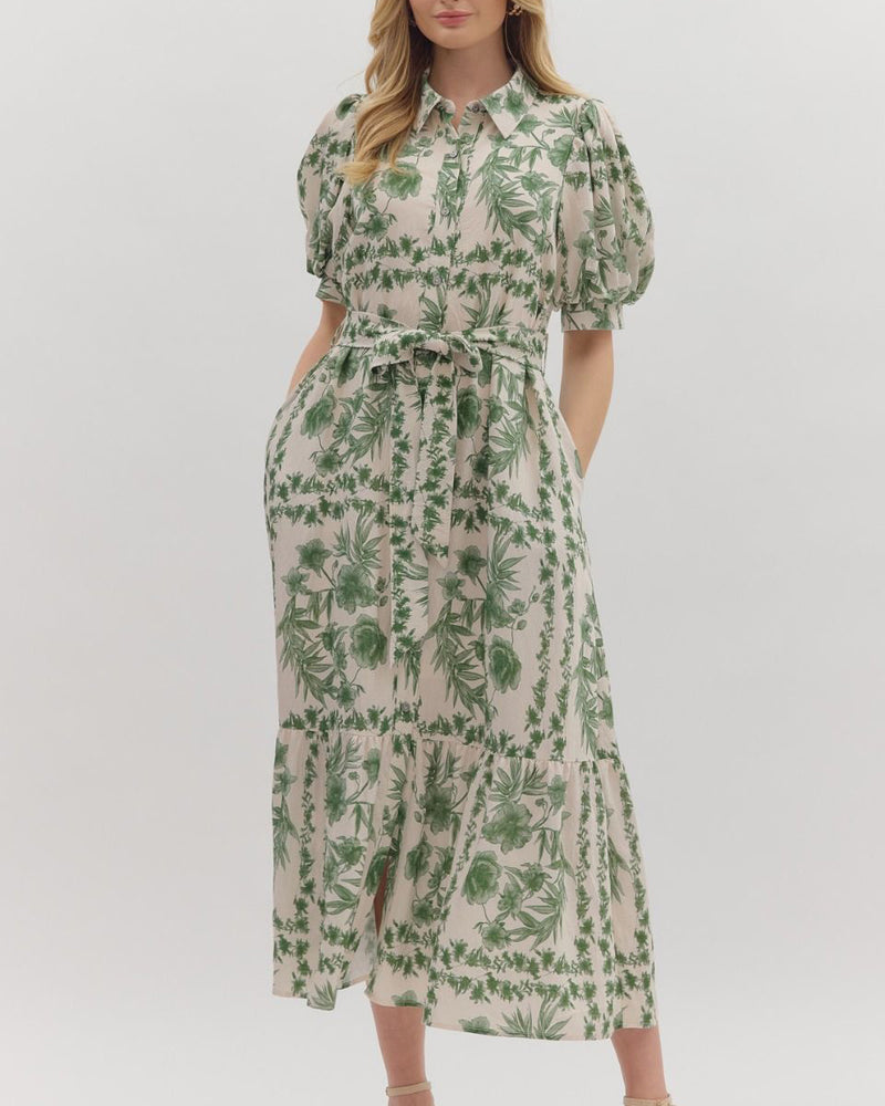 Floral Midi Dress - Basil - FINAL SALE