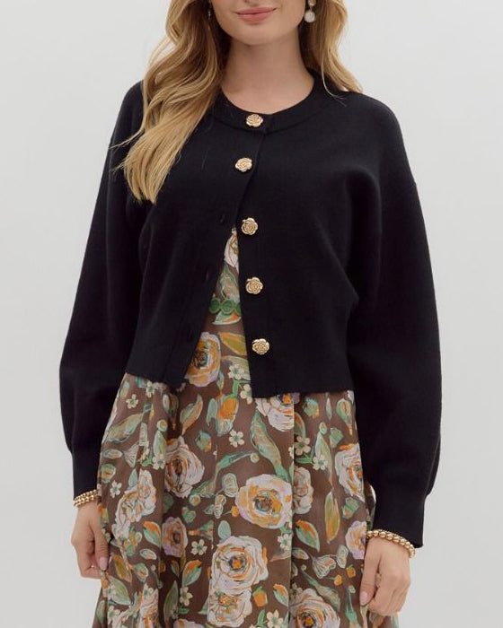 Gold Button Down Cardigan - Black