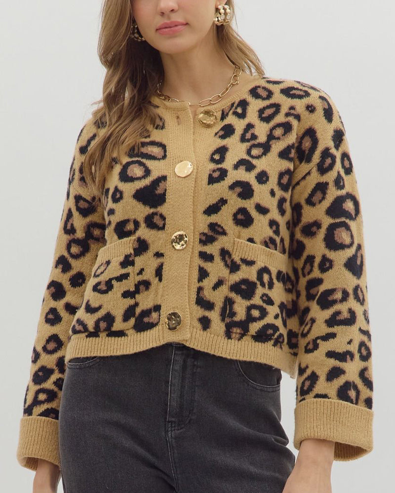 Animal Print Cardigan - Camel