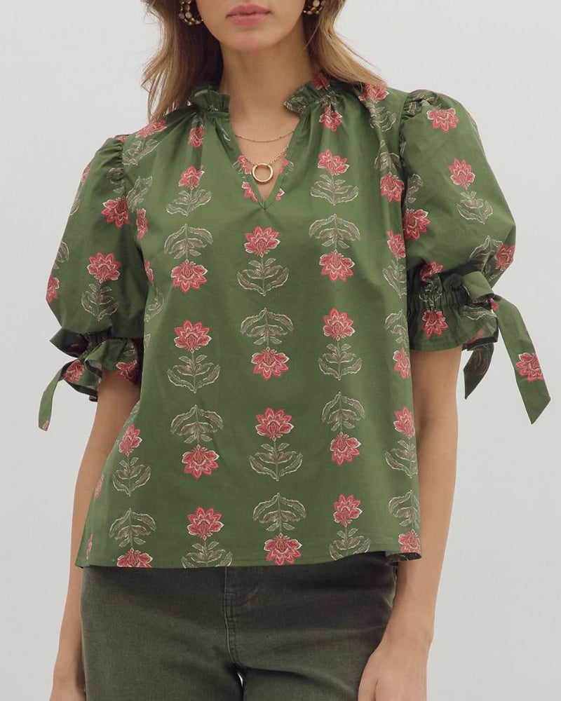 Floral Top - Olive - FINAL SALE