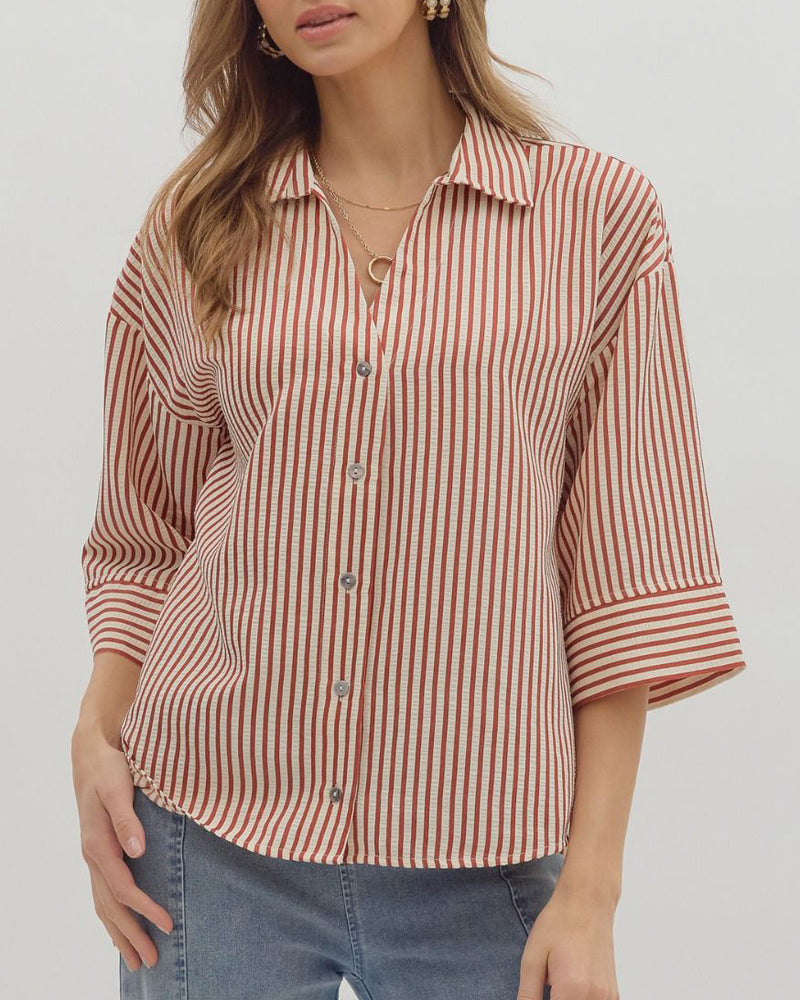 Stripe Button Down Top - Rust