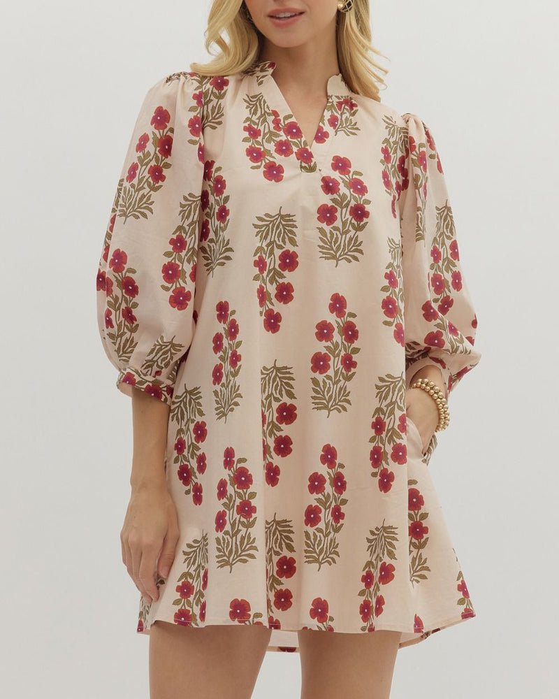 Floral Printed Mini Dress - Red/Ecru - FINAL SALE