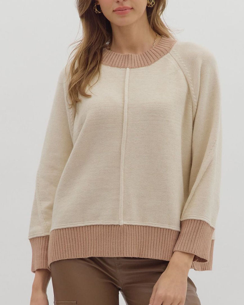 Knit Sweater with Contrast Accent Band - Ecru - FINAL SALE
