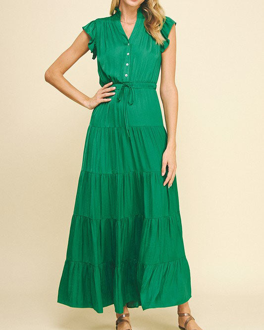 Satin Tiered Maxi Dress - Green - FINAL SALE