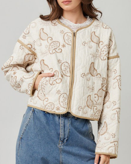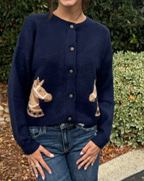 Embroidered Puff Sleeve Top - Navy - FINAL SALE