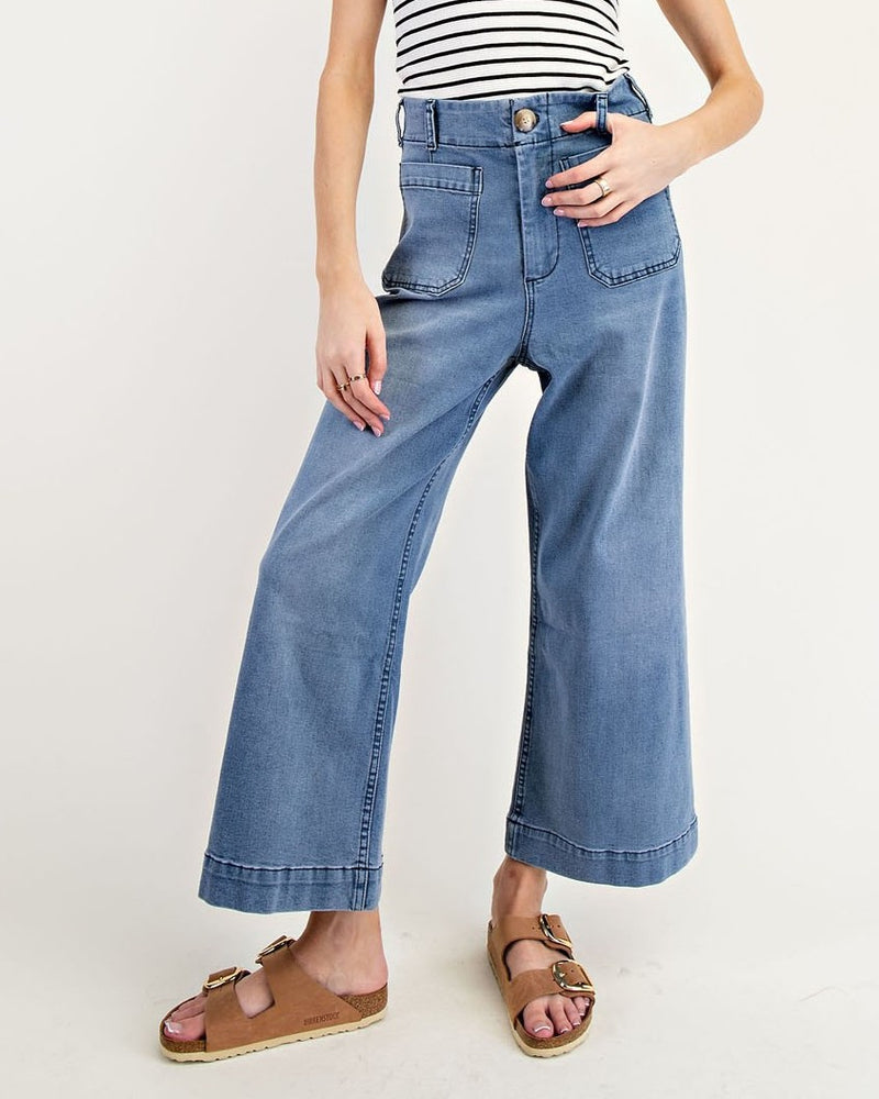 Cropped High Rise Wide Leg Jeans - Medium Wash