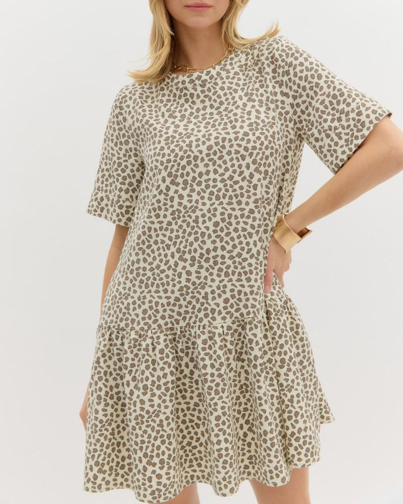 Short Sleeve Animal Print Mini Dress - Animal- FINAL SALE