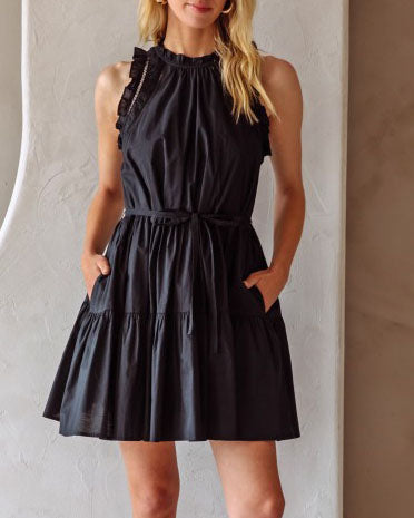 Sleeveless Ruffle Detail Mini Dress - Black - FINAL SALE