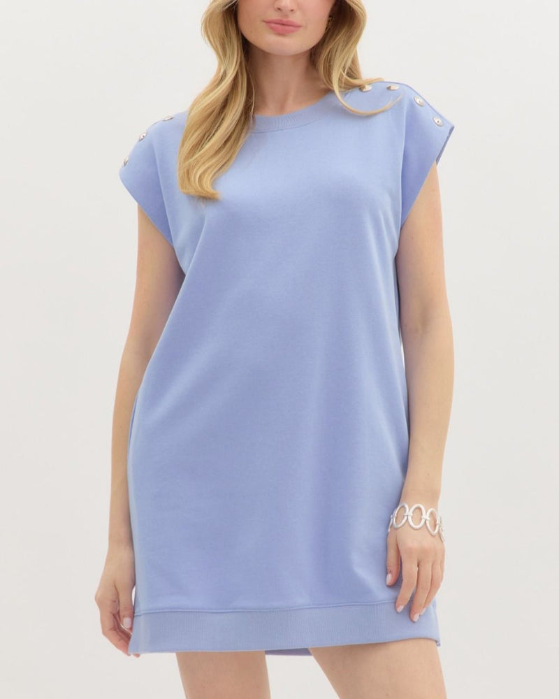 Stud Shoulder Detail Dress - Blue - FINAL SALE