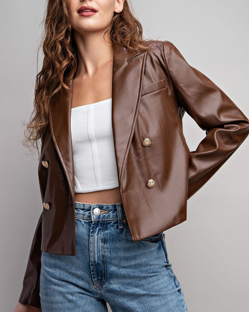 Faux Leather Crop Moto Jacket - Dark Brown - FINAL SALE