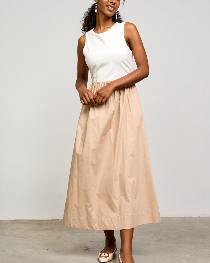 Mixed Media Tank Midi Dress - Taupe/White - FINAL SALE