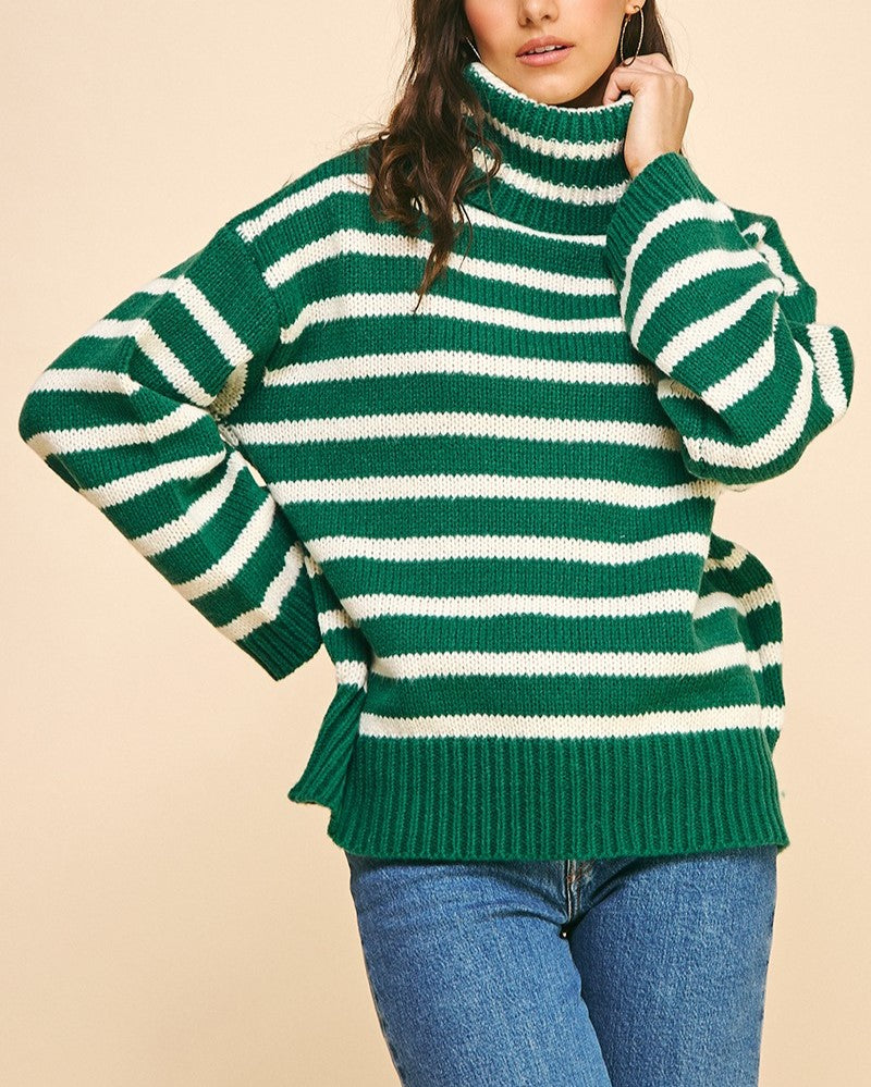 Stripe Turtleneck Sweater - Green - FINAL SALE