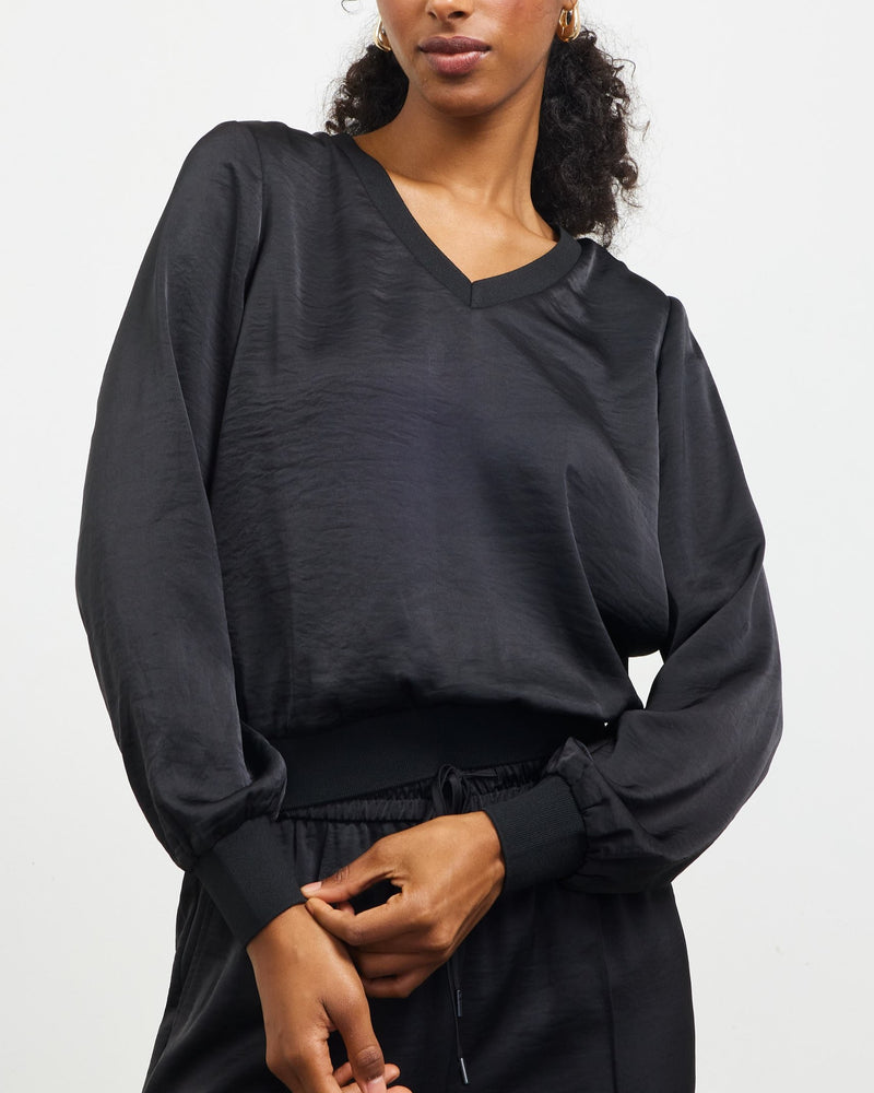 Rib Band Long Sleeve Top - Black - FINAL SALE