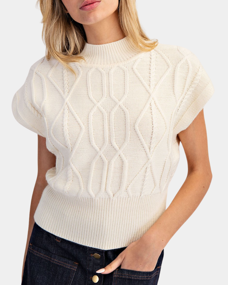 Diamond Cable Knit Top - French Vanilla