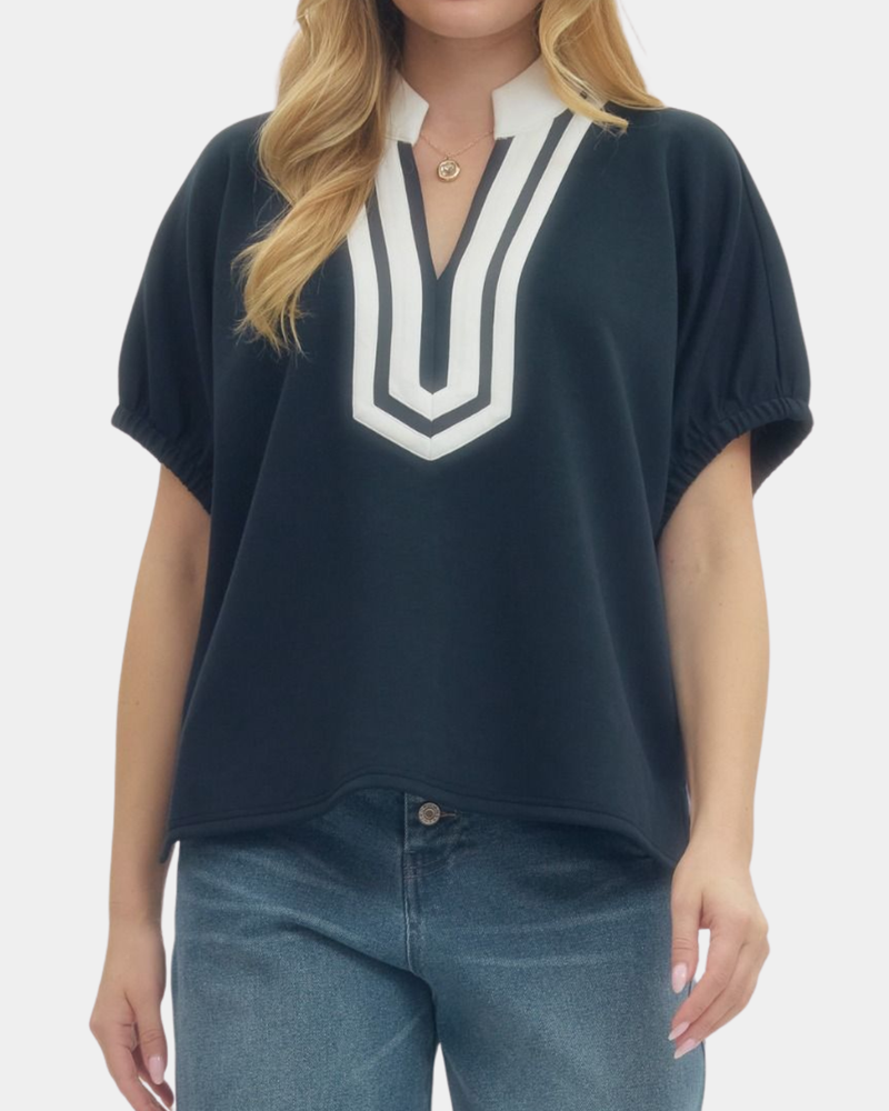 Contrast V-Neck Top - Navy
