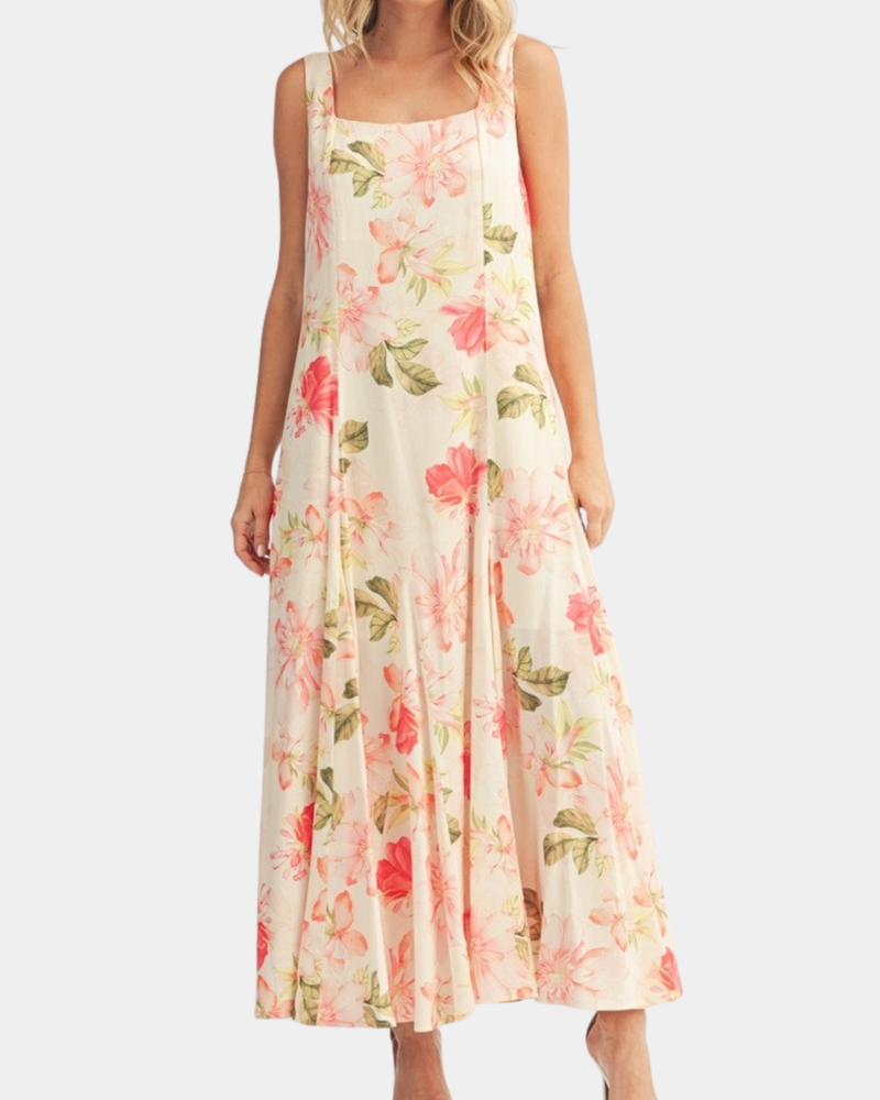 Floral Flare Maxi Dress - Cream