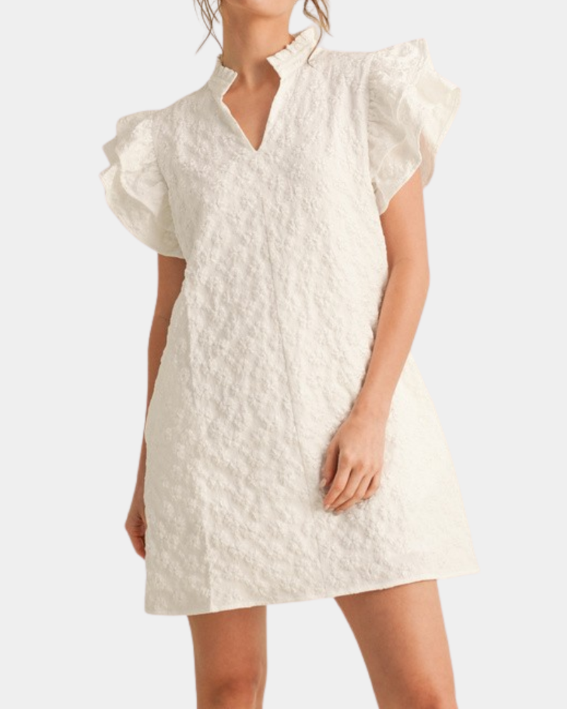 Embroidered Ruffle Dress - Off White