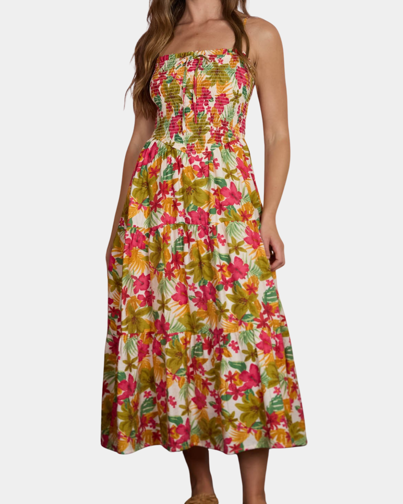 Tropical Spaghetti Strap Dress - Fuchsia/Multi