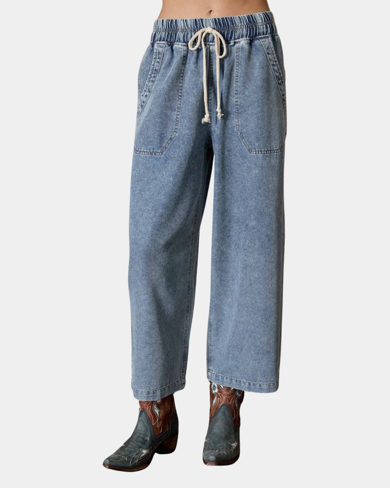 Washed Drawstring Pants - Denim