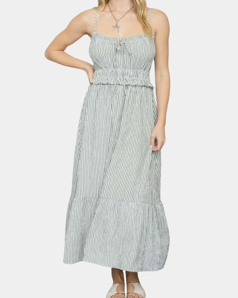 Stripe Keyhole Tie Dress - Green