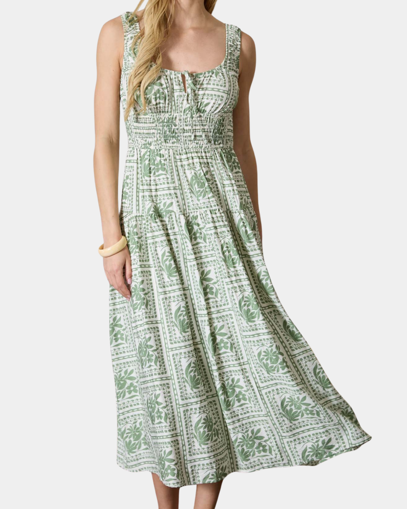 Floral Tile Print Dress - Olive