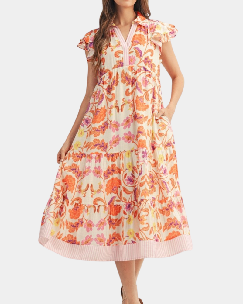 Layered Ruffle Floral Dress - Pink/Mix
