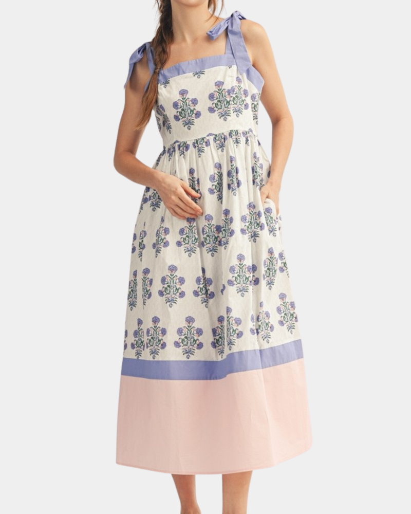 Floral Stripe Dress - Light Blue